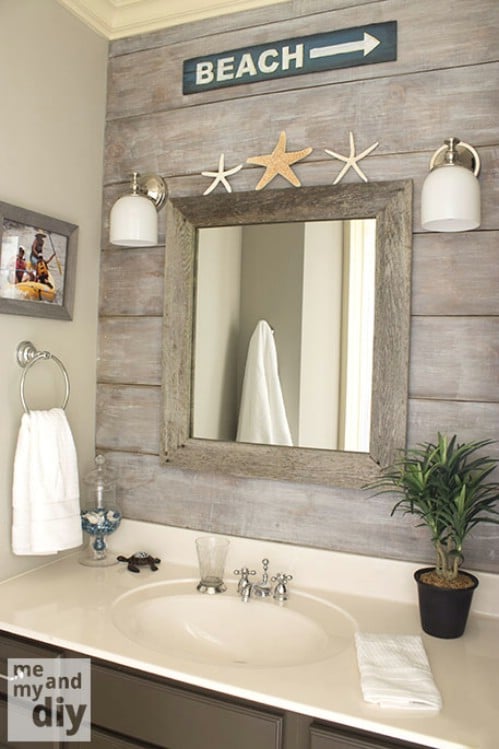 Even new boards can have a great weathered look if you do them right. For bathrooms (or any room, really), the weathered look is beautiful and you can achieve it easily. You do have to put a bit of work into it and it takes a couple of days (mostly for drying time). You begin by staining your planks or boards once they’re on the wall. Wipe them off lightly with a clean cloth and then let them dry. Once dried, you can paint over them with white wash and then blend with a rag. The result is a gorgeous weathered look that is inexpensive and really easy to do. Imagine what you could do to your cabinets with this method!