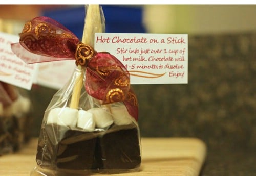 Imagine giving away little hot chocolates on a stick for Christmas or other gift-giving occasions. These are really easy to make and you mold them in an ice cube tray. Once finished, you just add the stick with the hot chocolate and marshmallows to a cut of hot milk and after a few minutes it creates hot chocolate. You can lightly spray the ice cube tray with cooking spray to keep the chocolate from sticking and to make for easier cleanup.Instructions and Project Credit – 30poundsofapples