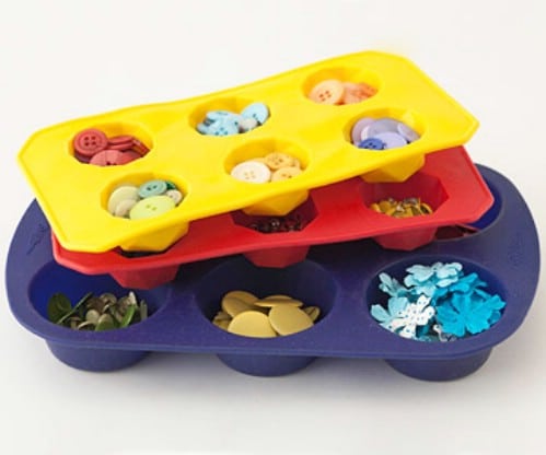 Ice cube trays offer the perfect sized compartments for keeping buttons and other smaller craft supplies perfectly organized. You can use plastic or silicone trays and they will stack neatly on top of each other so you can clean up your craft closet or cabinet and keep it organized much better. Those smaller items will always be easy to find and won’t get mixed in with larger items. This is a great way to store screws, push pins and other items that can be painful when found accidentally.Instructions and Project Credit – Bhg
