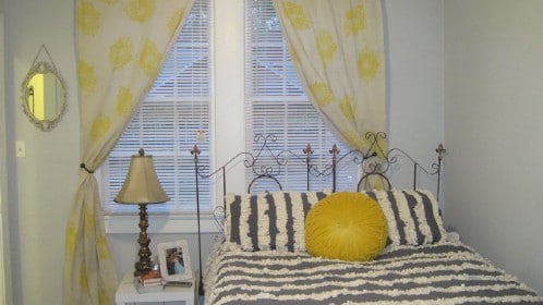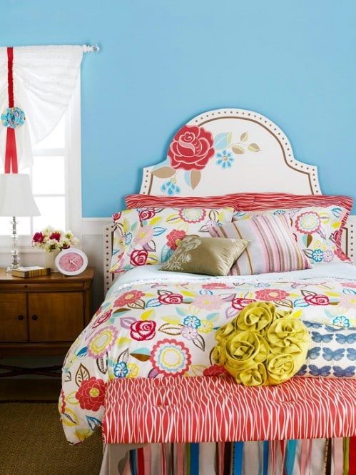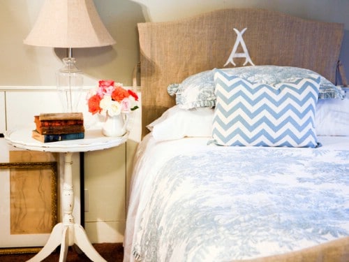A wooden base, some material left over from other projects and a little creativity will allow you to build this gorgeous monogrammed headboard. You simply have to cover the wood base with fabric and staple it down. Then just add your monogram in whatever material you want. You could also paint it on with fabric paint. Be sure to print off the monogram from your computer to use as a template (it’s cheaper than buying stencils) and then apply it however you choose. This is a really beautiful headboard that is customized to make it extra-special.
