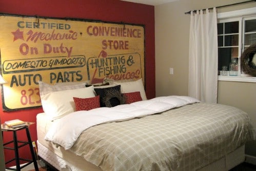 Depending on the look that you are trying to pull off, an old sign may be the perfect headboard. This is probably the easiest of all DIY headboards because there is very little work involved. You will need to find an old sign which you should be able to purchase at flea markets or thrift stores. Just get something that you really like and then you’ll turn it into a focal point above the bed. If you can’t find an old sign, you could actually make one yourself. Just get some plywood, mark out what you want on the sign and then paint. Go online for inspiration of old signs if this is the look that you want and you can print off stencils as well.