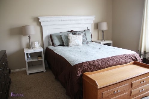 This mantel headboard was inspired by Pottery Barn’s Addison Headboard. Instead of buying it however, you can just make it yourself. It features loads of moulding which makes it very elegant and you can paint or stain it whatever color you want to match the rest of your bedroom décor. The best part is you can make this for about 1/5 of the price of Pottery Barn’s version and if you happen to have some moulding left over from home improvement projects, you can make it for nothing. Even if you have to buy the materials, you are still getting away loads cheaper than buying.